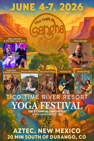 Sangha Fest is located at Tico Time River Resot near Durango, CO and celebrates health & wellness, conscious community, and personal development through yoga, breathwork, music, meditation, movement, art, dance, nature, ceremony, and play. You may arrive on Thursday, June 4th to get settled in and join us for a few movement classes, drum circle/opening ceremony, and evening sound bath!