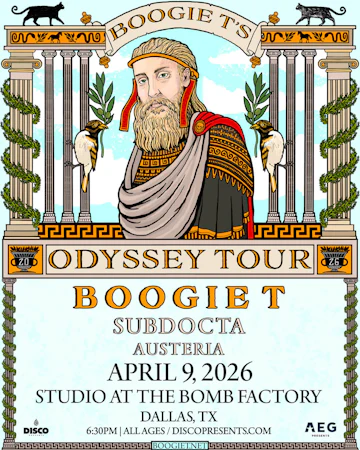 New Orleans own Boogie T has risen to prominence in the dubstep/bass music world as a noted DJ/producer/singer/multi-instrumentalist, touring the world, performing at festivals such as Lollapalooza, Bonnaroo, Coachella, EDC Vegas + Orlando, and releasing music with the likes of GRiZ, Snails, Subtronics, Ganja White Night, his band BOOGIE T.RIO, and more.