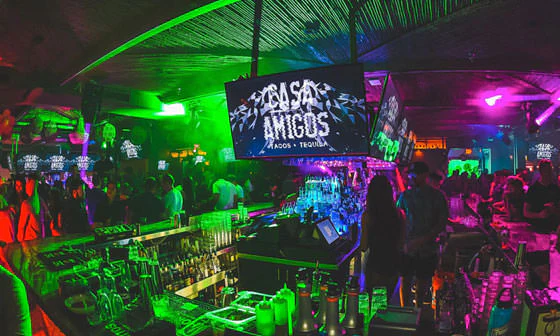 Casa Amigos combines Mexican flair with Scottsdale style, creating a chic space that embodies the warm beauty of the southwest. In this red brick enclosed structure, a lively restaurant and bar concept comes to life that showcases bright walls accented with colorful custom artwork and traditional Mexican tile work. The club was designed by an HGTV designer and features an expansive patio which is transformed in the ultimate dance floor at night with pulsing colorful lights and a stellar sound system thumping out Top 40’s beats. There’s also a boutique bowling alley upstairs called Skylanes, which adds to the after-dark action and flashing lights aesthetic, and an island bar that never stops pouring a bevy of tasty margaritas as well as VIP sections for tables with bottle service. When the sun goes down, Casa Amigos turns into a high-energy nightclub.