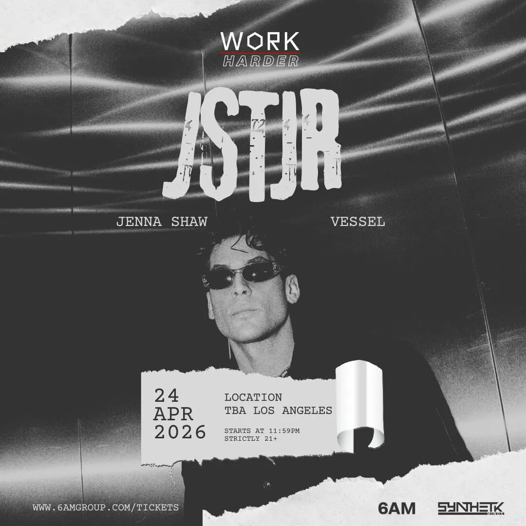 Hailed as the US ambassador of Buraka Som Sistema’s zouk bass movement in America, the New England native has forged a love for regional sounds from around the world with his inherent tendencies for hip hop and experimental electronic production. This unique, hybrid and inclusive approach to dance music in a growingly homogenous market has earned him nods from an elite group of producers including Skrillex, A-Trak, Dillon Francis, GTA, and Diplo – the last of whom JSTJR worked with directly as a credited artist on Major Lazer’s Peace Is The Mission in 2015. In 2017, JSTJR championed his global bass sounds across North America, Australia, China and India. 2018 has him on a nation wide bus tour, some of the biggest festivals in North America and several releases in the pipeline dropping on Insomniac Records starting in Spring.