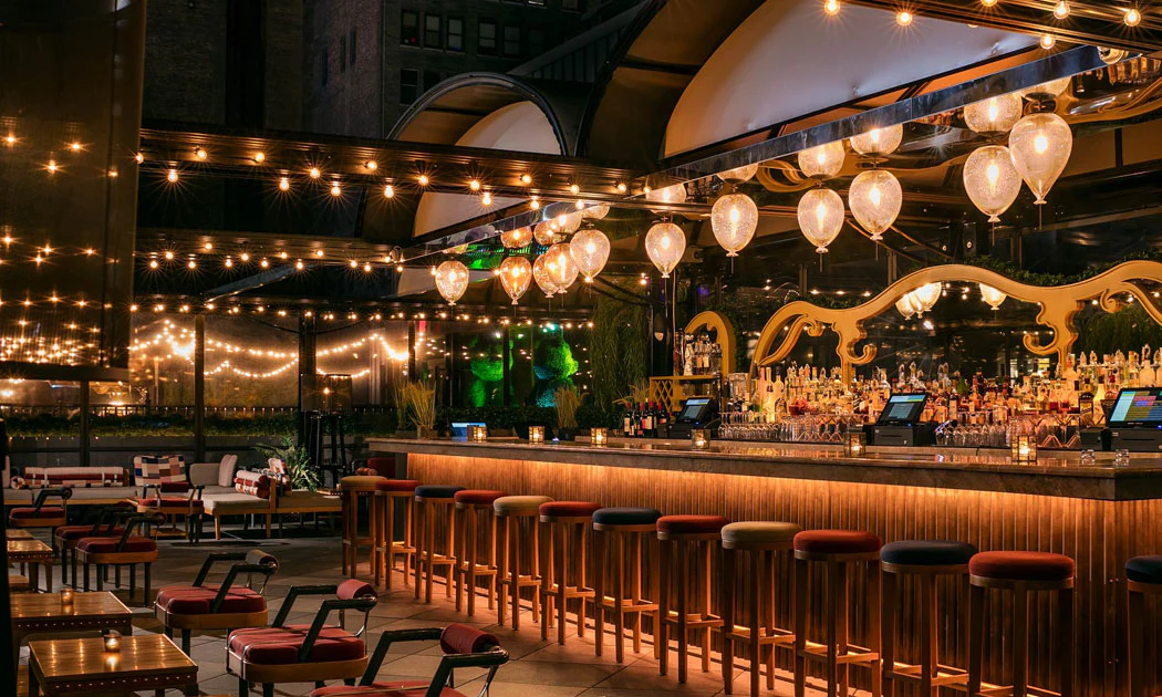 New York City’s largest indoor/outdoor hotel rooftop bar and lounge features an “urban amusement park” concept with an adult sensibility and epic Empire State Building skyline views. Highlights of the 10,000 square foot rooftop include carousel seating, an oversized topiary garden, and Foreplay, a miniature putt-putt, featuring life-size animals in naughty poses. The vast, all-season rooftop comprises multiple bars and seating areas, each with a distinct vibe and design sensibility to provide an endless stream of indelible moments. A menu of shareable light bites is full of modern takes on classic “State Fair” items including Sausage & Peppers, Maine Lobster Roll, Duck Carnitas Tacos, and the Carnival Burger. A unique and cheeky addition to the menu is the option to book one of the Moxy hotel’s nineteen Crashpads – meant for those who may have had a few too many rounds on the carousel or simply don’t want the night to end. Nightly live DJs and a list of decadent cocktails—along with beer, wine, champagne, and spirits—add to the sense of indulgence and amusement.