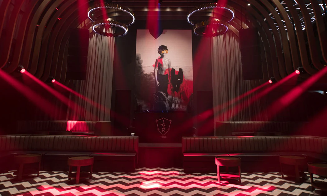 The 1OAK brand has hit the ground running in Asia, with its most ambitious nightclub to date opening to the public in the Japanese capital. Originating from New York, 1OAK is infamous for hosting the world’s biggest celebrities and hip-hop acts. With venues in New York, Los Angeles and Las Vegas, 1OAK has landed on Japan’s shores to opens it’s doors in Tokyo. Located in the old ColoR. Nightclub across from the Roppongi Tsutaya, 1OAK makes its presence immediately known with a massive 1OAK logo on the side of the building. After a typically long lineup at the door, guests are greeted with the outstanding interior design that leads into the main floor. The Tokyo club includes a karaoke room, two private rooms, and a main dance floor flanked on both sides by two rows of spacious booths. The smaller second floor has additional seating.