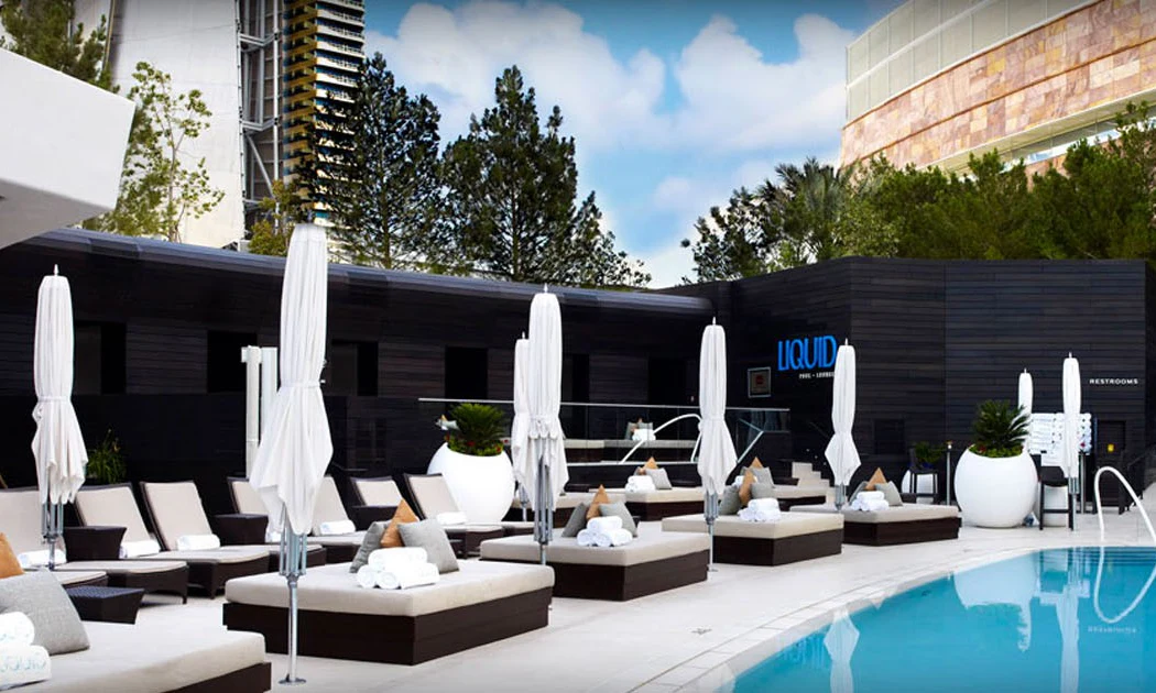 The ultimate in poolside opulence, LIQUID is defined by its distinctive contemporary ambiance and ultra VIP service. Poolside music sets a lively mood as guests enjoy the exclusivity and seclusion provided by towering palms.