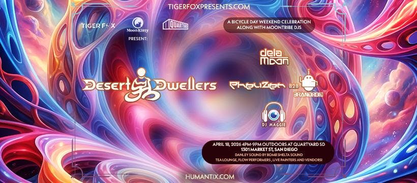 Desert Dwellers primarily consists of Amani Friend and Treavor Moontribe, amongst a webwork of inspiring collaborators; together they are one of the most pioneering and prolific downtempo artists hailing from the United States. After the success of the DownTemple Dub series on White Swan, and performances at some of the most prominent music festivals in North America, including Lightning In A Bottle, Symbiosis, Wanderlust, Shambhala, Photosynthesis, Beloved