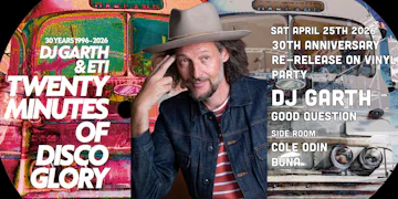 This annual tour along with early appearances at Burning Man and Reggae on the River Festivals gave Garth the inspiration to produce his own music. Wicked Records' first (and most successful) release was DJ Garth's 1996 collaboration with E.T.I., "20 Minutes of Disco Glory," which remains a popular House track. It was featured in the soundtrack for the movie Groove.