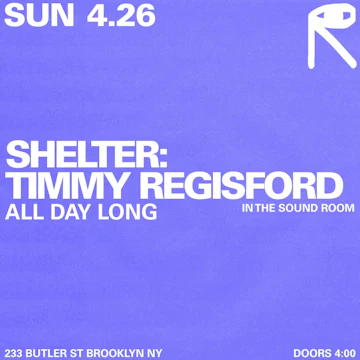 In 2001, after a decade at Hubert Street, Shelter relocated to midtown Manhattan. Five years later, Shelter relocated back downtown to Soho, close to it’s original home. Regisford is currently developing his artist Quentin Harris with releases on his labels Unrestricted Access and Restricted Access.