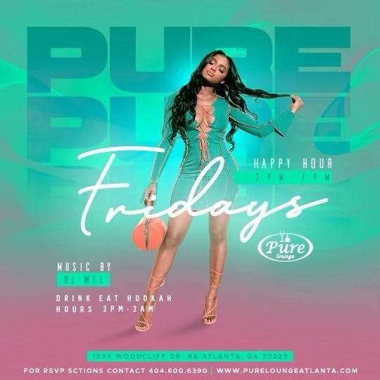 Pure Lounge is located 10 minutes from downtown or 5 minutes from Buckhead on North Druid Hills and Briarcliff Rd. We offer an intimate, yet modern vibe seven days a week. Pure is a place for a relaxing social gathering, birthday celebration, or romantic evening out. Come and enjoy our delicious freshly cooked food, variety of mixed drinks, active nightlife, and premium hookah with a lot of quality flavors to choose from. We are passionate about sourcing the highest quality service and smoking experience.