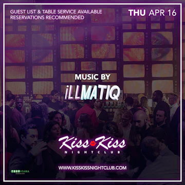 For more info about guestlist benefits, check the event details for Kiss Kiss.