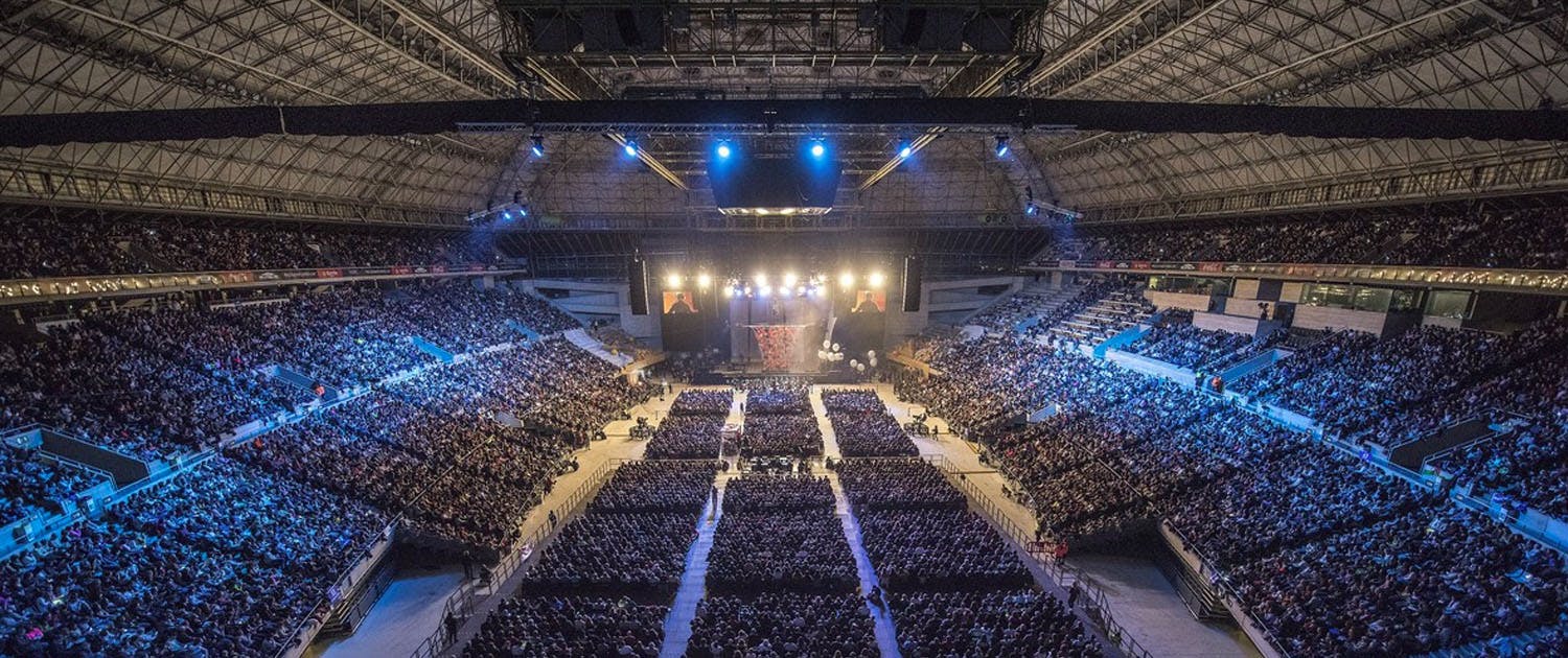 Palau Sant Jordi (St. George's Palace) is an indoor sporting arena and multi-purpose installation that is part of the Olympic Ring complex located in Barcelona, Catalonia, Spain. Designed by the Japanese architect Arata Isozaki, it was opened in 1990. The maximum seating capacity of the arena is 17,960. It is the largest indoor arena in Spain.