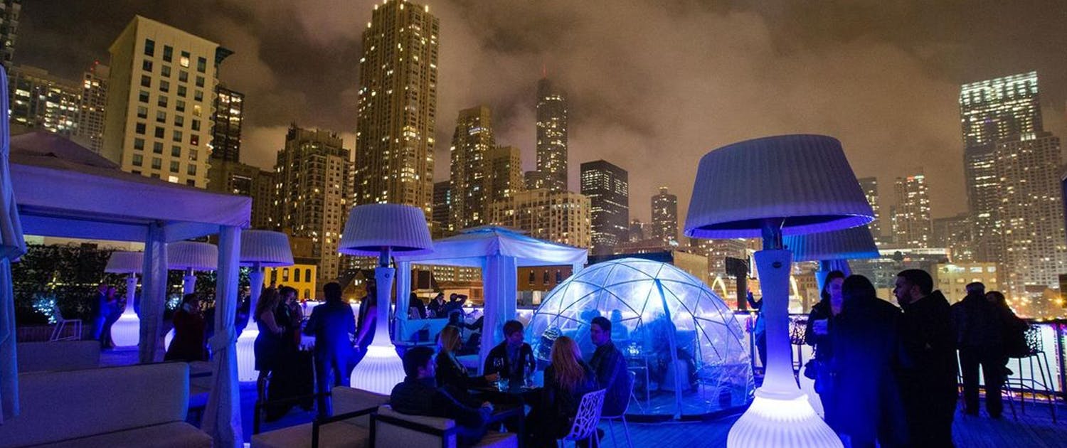 Get started at the indoor bar with plush banquettes and a VIP area. Breeze through the sliding glass wall and you’ll find yourself sipping drinks at the outdoor bar during the day, after work, at night or on weekends in front of the commanding views of Chicago.