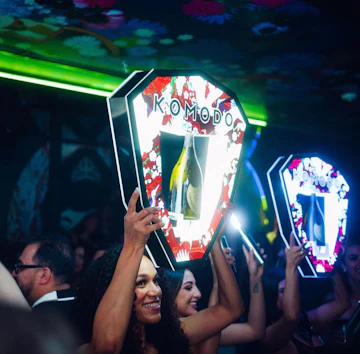 Tucked discreetly above Komodo in Dallas, Komodo Lounge fuses intimate hideaway ambiance with vibrant nightclub energy across both indoor and outdoor areas. The exclusive destination features a state-of-the-art DJ booth and a full bar, with bottle service and sparkler parades included. The decor reflects salon opulence with a dash of Southeast Asia night market: The runway-like room is framed with prints by the artist Mari Kim, colorful floral graphics and neon accent lighting – all of which are highly Instagrammable, and the entire experience is elevated by Groot Hospitality's signature VIP service.