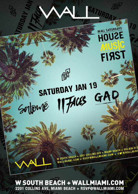 WALL Miami is proud to announce: #HouseSaturdays 1.19.19 #HouseMusicFirst Sounds by: Salomé + II Faces + GAD Music Style: House Music