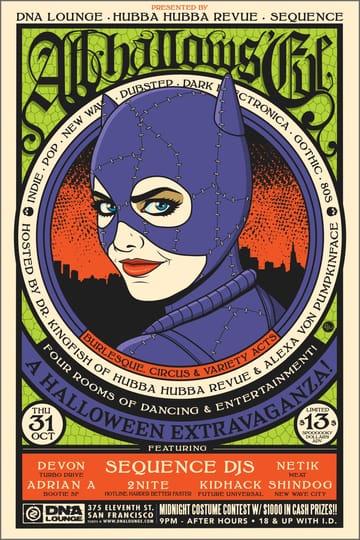 If there was ever a holiday created just for DNA Lounge that holiday is Halloween, and this is our eighteenth spoooooky year throwing this party! We're bringing you a double-sized Halloween madhouse in all four rooms!Join us at this can't-miss, annual event for bewitching burlesque upstairs from 10pm to 11:30pm, and ambient ghostly aerialists and skillful circus syrens performing all night to the top DJs in Halloweentown!Five Party Multipass:Includes admission to our full week of Halloween festivities: All Hallow's Eve, Booootie, Death Guild, So Stoked, and Turbo Drive! Because we go hard on Halloween and so do you. Limited quantities available!