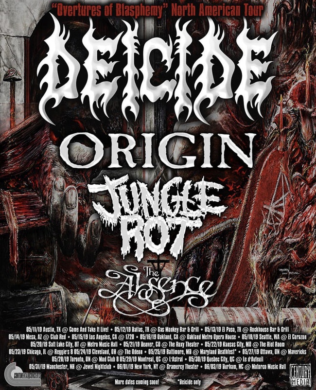Formed in 1987 by drummer Steve Asheim and guitarist brothers Eric and Brian Hoffman as "Carnage", then hiring bassist/vocalist Glen Benton and becoming "Amon". They would later change the band name to Deicide in 1989. The band rose to mainstream success in 1992 with their second album Legion,[1] and is credited as the second best-selling death metal band of the Soundscan Era, after Cannibal Corpse.