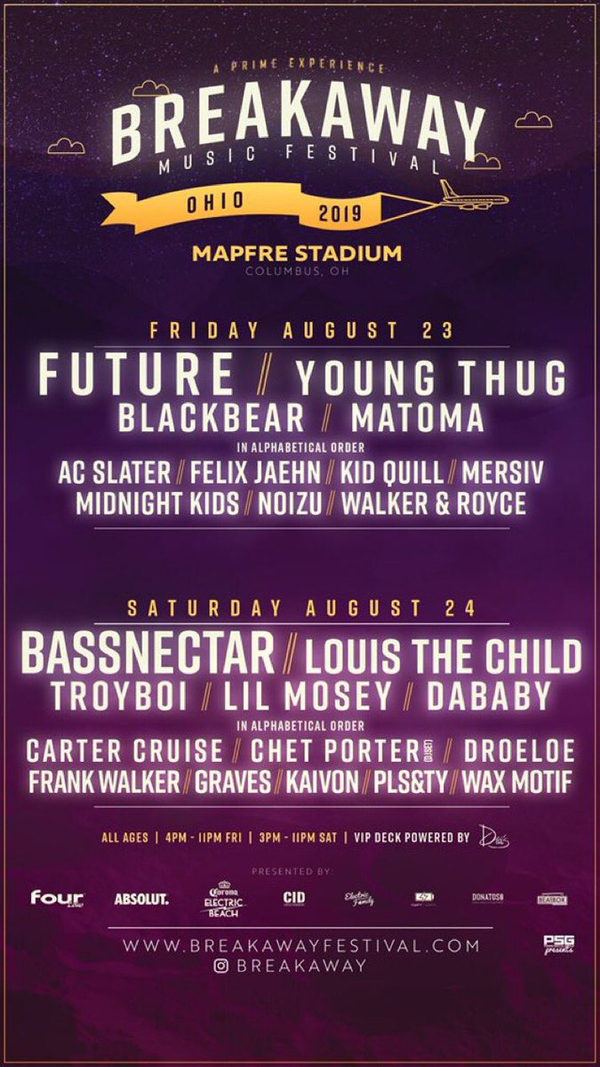 Breakaway Music Festival is a 2-Day All Ages event featuring your favorite artists in Electronic, Hip-Hop, and Pop music. General Admission to the event includes access to the Main Stage, Corona Electric Beach Stage, Silent Disco tent, local food trucks and vendors, and Sponsor activations and activities. Head to Ohio.BreakawayFestival.com for the latest info!