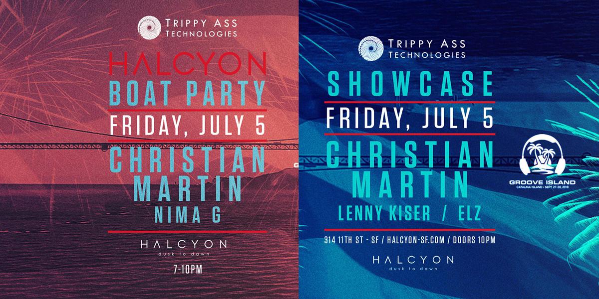 Sail away with us and Christian Martin! ! Boat Party Tickets grant you access to the Trippy Ass Technologies Showcase after party at Halcyon SF, with Christian Martin, Lenny Kiser and Elz.