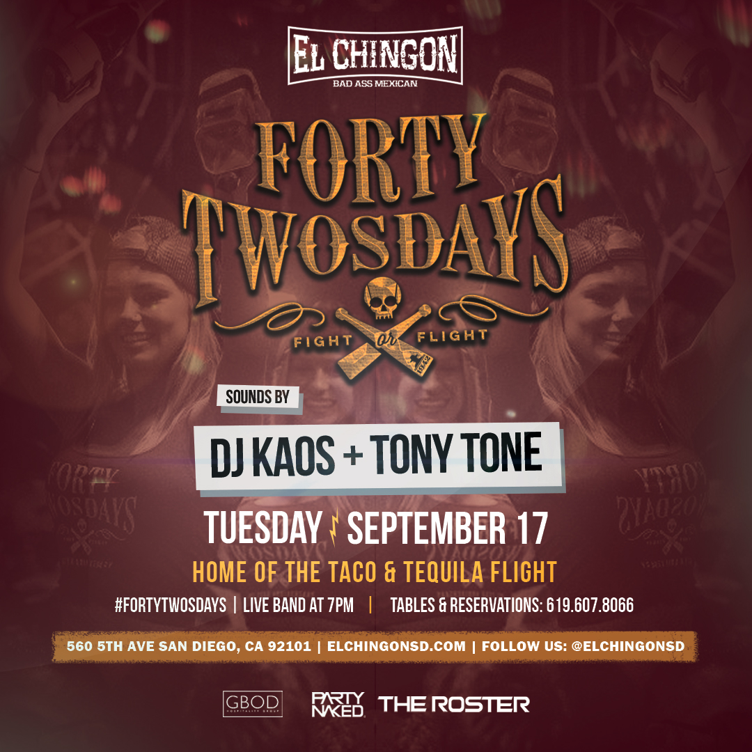 This is not your average Taco Tuesday, this is Forty-Twosdays! Check out Escobar and Deejay Al on decks this week spinning all night long!