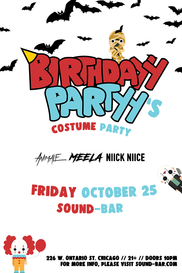 We celebrate Halloween this weekend with Birthdayy Partyy’s Costume Party with support by Animalé, Meela, and Nick Nice.