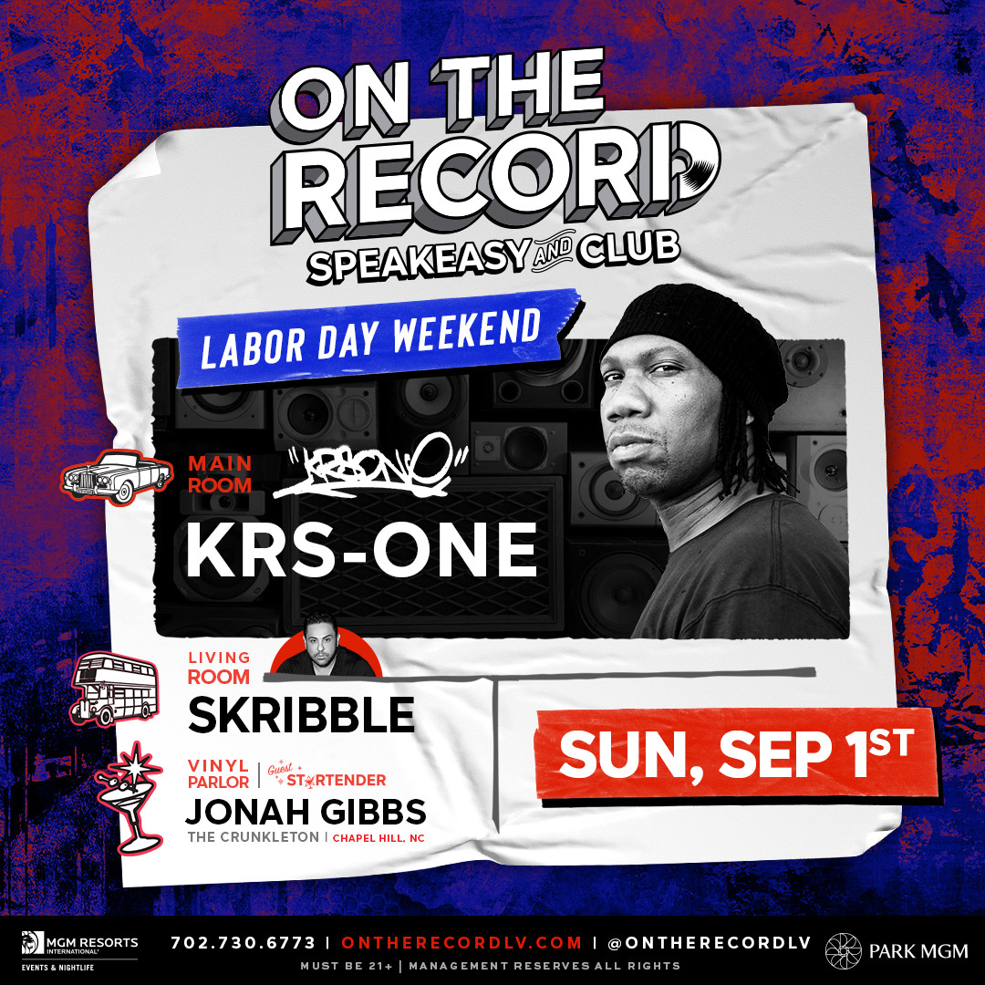 Celebrate a special evening during Labor Day Weekend with the legendary KRS-ONE at On The Record and expect the unexpected. Our two-story record store speakeasy sports hidden karaoke suites, an intimate Vinyl Parlor, a double-decker bus DJ booth with sounds by our resident DJ and craft cocktails designed by our master mixologists.