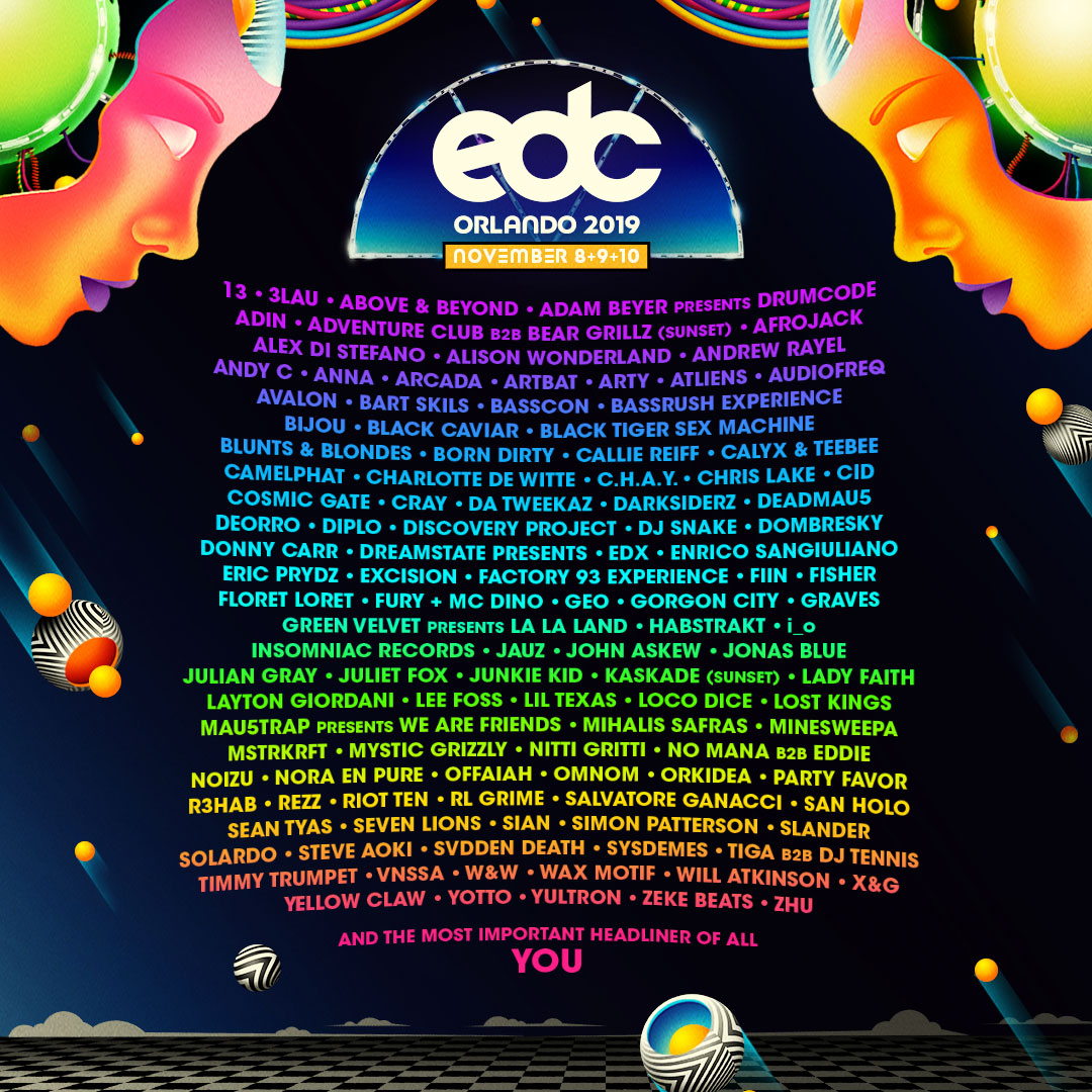 A GA ticket grants you entry through the gates of EDC, where you are free to wander and explore this colorful world of fantastically costumed performers, mesmerizing art and visual effects, and multiple stages of world-class music and cutting-edge production.