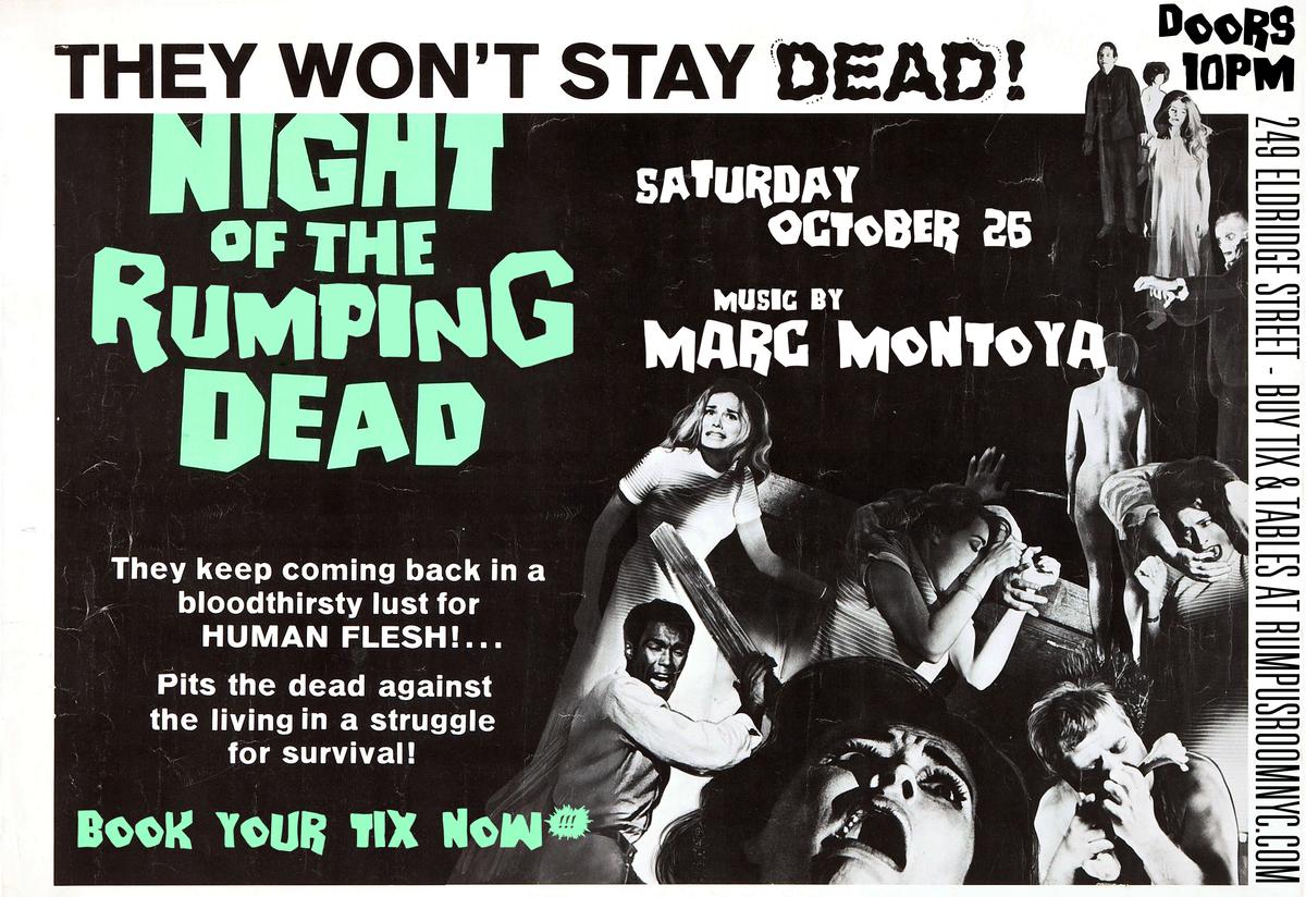 It's Night Of The Rumping Dead Saturday Night at Rumpus Room! DJ Marc Montoya! Spooky drink specials! Terrifying gogo dancers! Scary costume contest! Buy tickets and tables now!