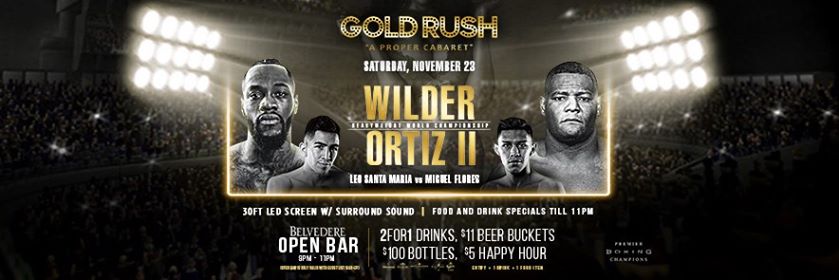 The best place to catch all the boxing action is Gold Rush Cabaret! Watch WBC champion Deontay Wilder rematch Cuban standout Luis Ortiz on a 30ft LED screen and enjoy a Belvedere open bar from 9pm-11pm, 2For1, $11 Beer Buckets & $100 Bottles Until 11pm, plus the High $5 Happy Hour Until 10pm.