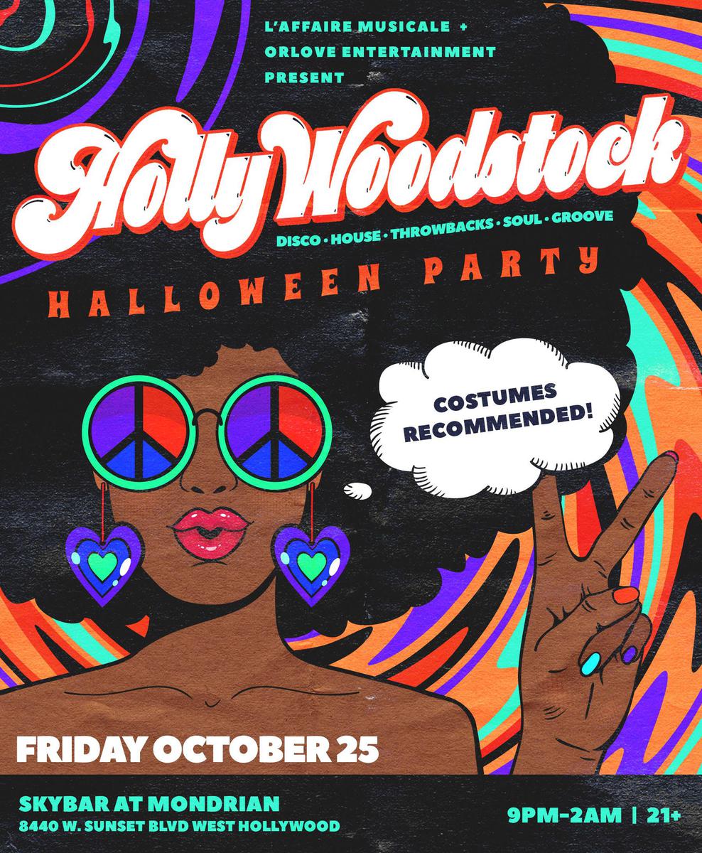 We're excited to bring this years annual Holly-WoodStock Halloween Costume Party back to Skybar of the Mondrian Hotel in West Hollywood. Travel back in time to a place of peace, love & happiness and free your soul at this years 60's Halloween Party.