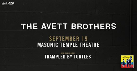 AEG and The Ark Present: The Avett Brothers with special guests Trampled by Turtles September 19 at The Masonic Temple Theatre Tickets on sale Friday, April 5 at 10am
