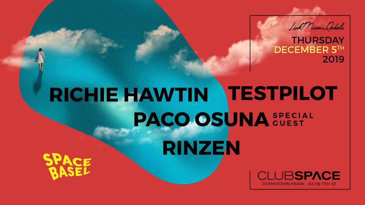 Thursday night of Space Basel week! We are proud to bring a Techno filled line up of talent that rivals festivals around the world! Link Miami Rebels Presents... RICHIE HAWTIN & TESTPILOT (Miami Club Debut) & PACO OSUNA + RINZEN Doors 11 pm 21+