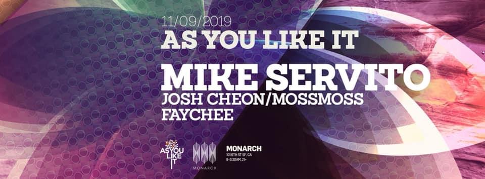 We welcome back AYLI favorite MIKE SERVITO for an intimate affair at Monarch. Simply put, Servito brings the rave. Make sure you have your dancing shoes because you can expect a dance-party in the cave. Quality.