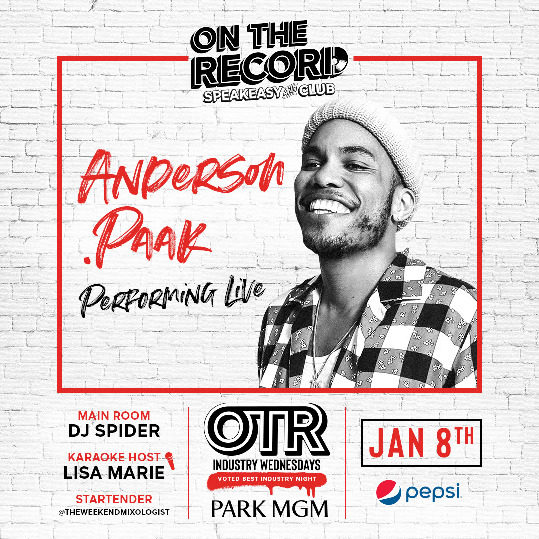 Celebrate OTR Industry Wednesdays at On The Record with a special live performance by Anderson .Paak! Expect the unexpected. Our two-story record store speakeasy sports hidden karaoke suites, an intimate Vinyl Parlor, a double-decker bus DJ booth with sounds by our resident DJ and craft cocktails designed by our master mixologists.