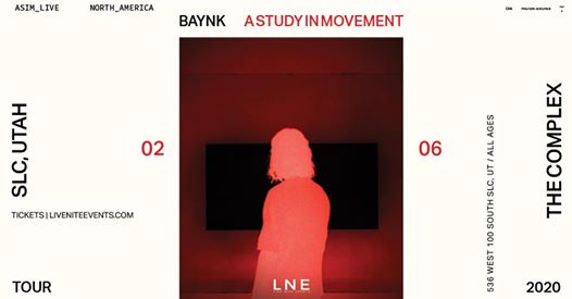 Live Nite Events Presents BAYNK A Study In Movement Support: Austin Millz & Nolie Tickets on sale Friday 11/8 at 10AM Thursday, February 6th Doors Open At 7PM All Ages Show The Complex 536 W 100 S Salt Lake City, UT
