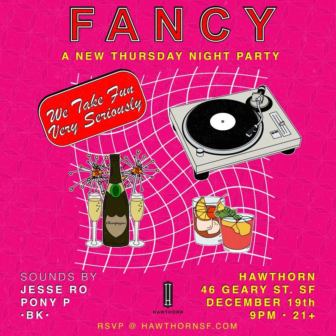 Please join us for Hawthorn's FANCY series happening every Thursday featuring the city's best DJs playing Open Format, R&B, Hip Hop and Atmospheric Soul on Hawthorn's one of a kind, VOID sound-system. Reinventing Thursday nights for professionals and socialites inside Hawthorn - San Francisco's most luxurious lounge venue.