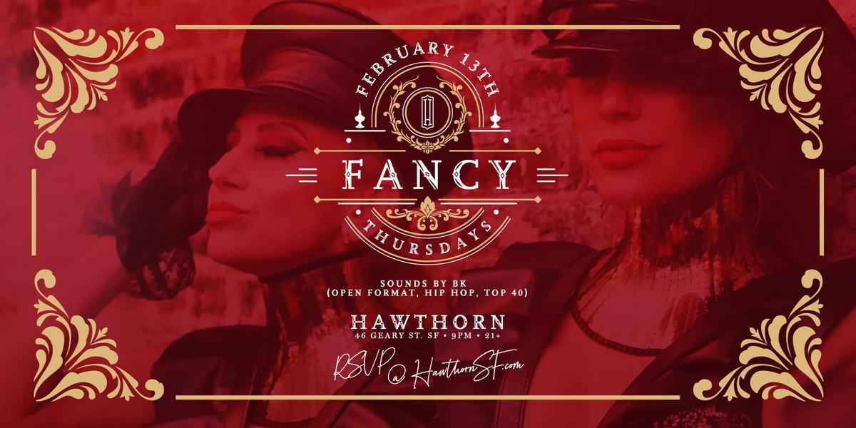 Please join us for Hawthorn's FANCY series happening every Thursday featuring the city's best DJs playing Open Format, R&B, Hip Hop and Atmospheric Soul on Hawthorn's one of a kind, VOID sound-system. Reinventing Thursday nights for professionals and socialites inside Hawthorn - San Francisco's most luxurious lounge venue.