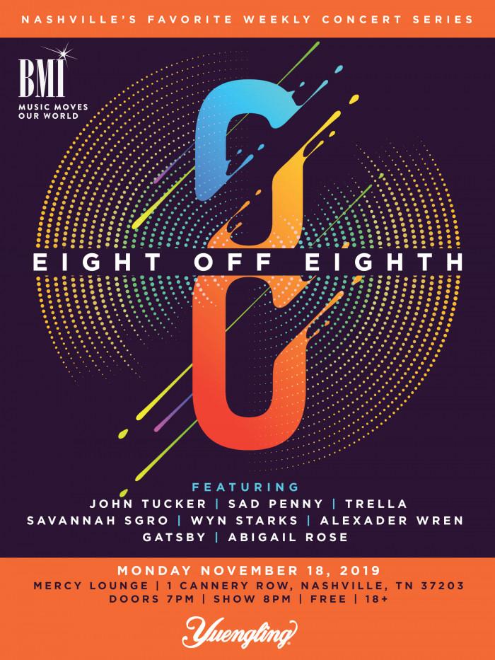 8 Off 8th hosted by BMI performances by John Tucker, Sad Penny, Trella, Savannah Sgro, Wyn Starks, Alexander Wren, Gatsby, and Abigail Rose