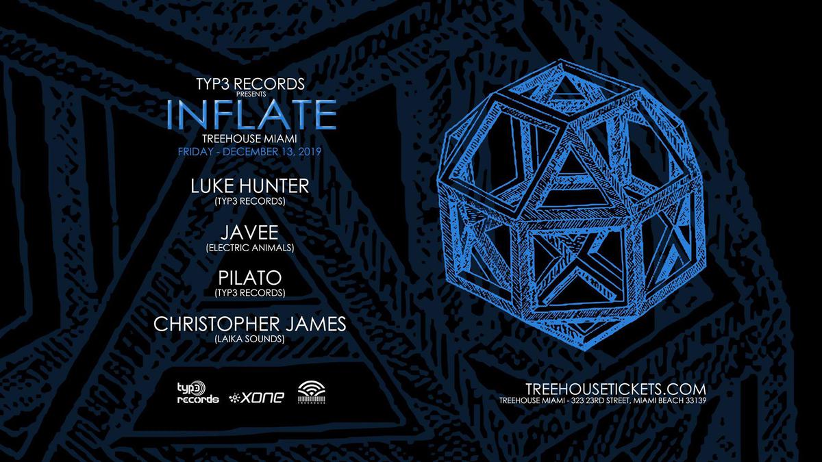 Typ3 Records presents Inflate Friday, December 13th Typ3 Records presents Inflate Luke Hunter Javee Pilato Christopher James Doors open at 11pm