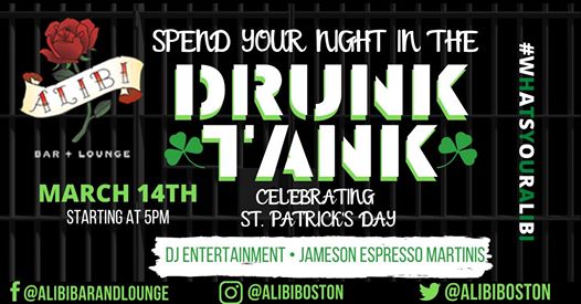 Spend your night in the DRUNK TANK at Alibi Bar & Lounge!