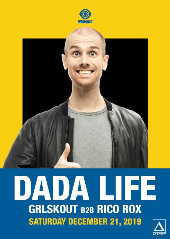Saturday, Decmber 21st Insomniac presents Dada Life Doors open at 10pm. 21 & over.