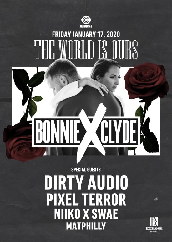 Friday, January 17th Insomniac presents Bonnie X Clyde at Exchange LA 618 S. Spring St, LA CA 90004 Event is 21 & over.