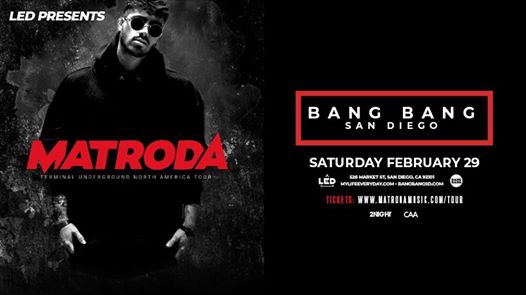 LED presents... Matroda Tickets ON SALE Tuesday, 12/10 at noon PST: http://bit.ly/36lu3IV Coupon code: MATRODALED Matroda The best is yet to come Soundcloud: www.soundcloud.com/matrodamusic Twitter: www.twitter.com/matrodamusic Instagram www.instagram.com/matrodamusic Youtube: www.youtube.com/matrodamusic - - - - - - - - - - - - - - - - - - - - - - - - - - - - - - - - - - - - - - - - - - - - - - - - - Bang Bang www.bangbangsd.com www.twitter.com/BangBangSD www.instagram.com/BangBangSD For bottle service inquiries please contact: Conan Dunn conanneverdunn@gmail.com 1 (619) 762-0833 No flip flops No Shorts No Tank tops No Jerseys - - - - - - - - - - - - - - - - - - - - - - - - - - - - - - - - - - - - - - - - - - - - - - - - - LED presents www.myLifeEveryDay.com www.twitter.com/LEDpresents www.instagram.com/ledpresents www.facebook.com/ledpresents