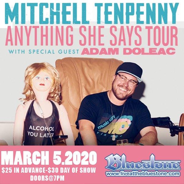 Mitchell Tenpenny LIVE at The Bluestone Mitchell Tenpenny in concert LIVE at The Bluestone on March 5th, 2020 Doors for the show will open at 7pm Opening Artist: Adam Doleac Tickets on-sale Friday, December 13th at 10am