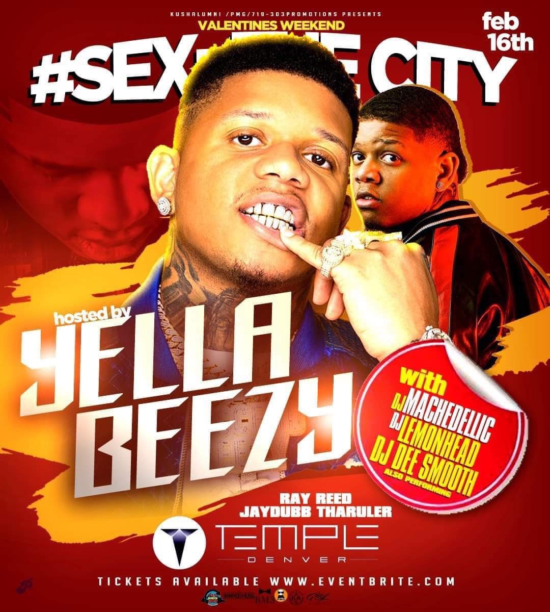 #SexInTheCity Staring Yella Beezy live CO: Ray Reed and JayDubb ThaRuller Music by: Machadellic / Eddie L. Kain Jr. / DJ DEE SMOOTH $30 GA $60 VIP - Includes Meet & Greet with Yella Beezy