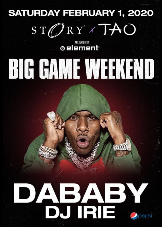 STORY & Tao Group present: Big Game Weekend DaBaby & DJ Irie - Saturday, February 1st, 2020