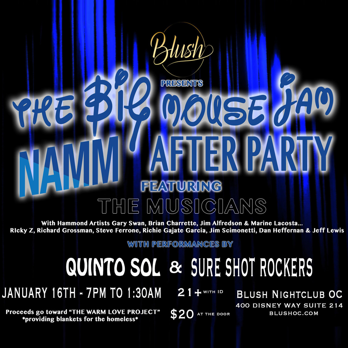 Join Us This Thursday Night For The Big Mouse Jam, A Special Namm Show After Party! Featuring Hammond Artists Gary Swan, Brian Charrette, Jim Alfredson And Marine Lacosta, Ricky Z, Richard Grossman, Steve Ferrone, Richie Gajate Garcia, Jim Scimonetti, Dan Heffernan & Jeff Lewis.