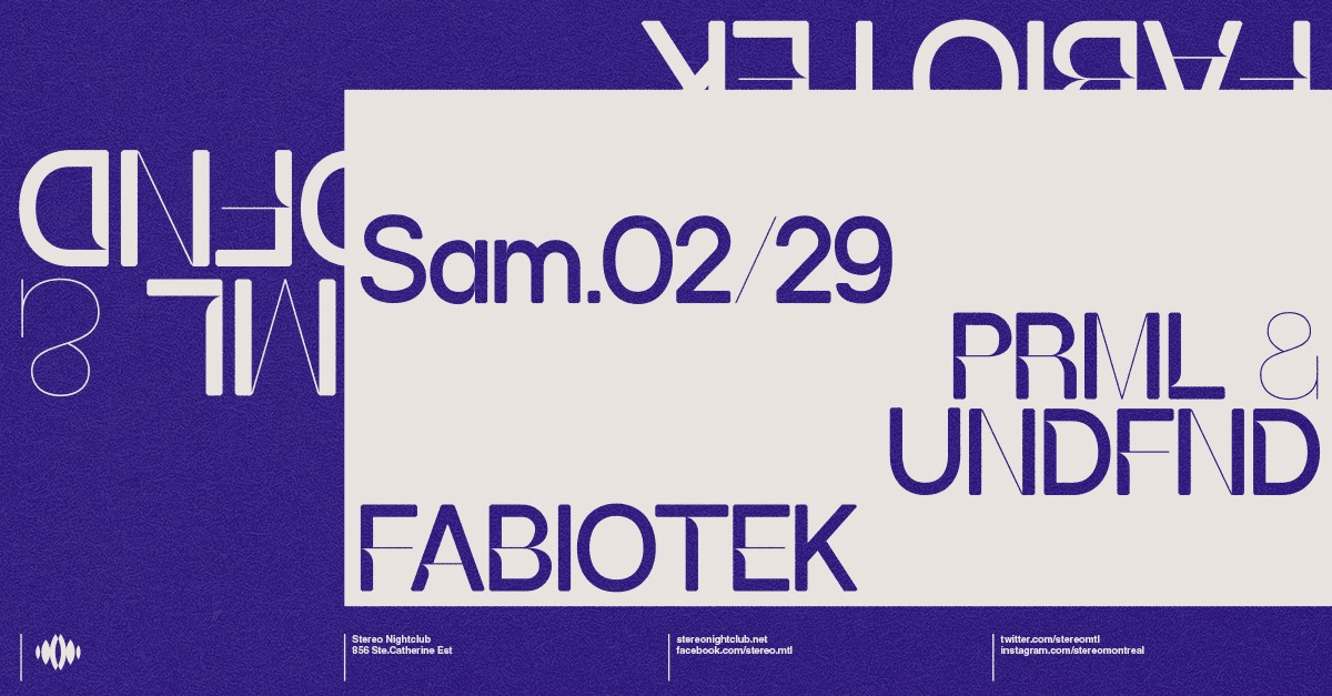 Stereo Presents Prml & Undfnd | FabioTek Saturday March 1st, 2020