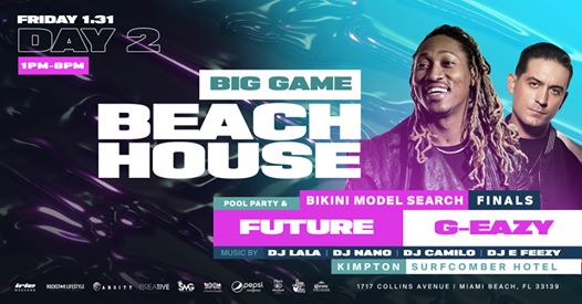 Big Game Beach House Pool Party will feature the Bikini Model Search Finals and special live performances by G-Eazy & FUTURE!