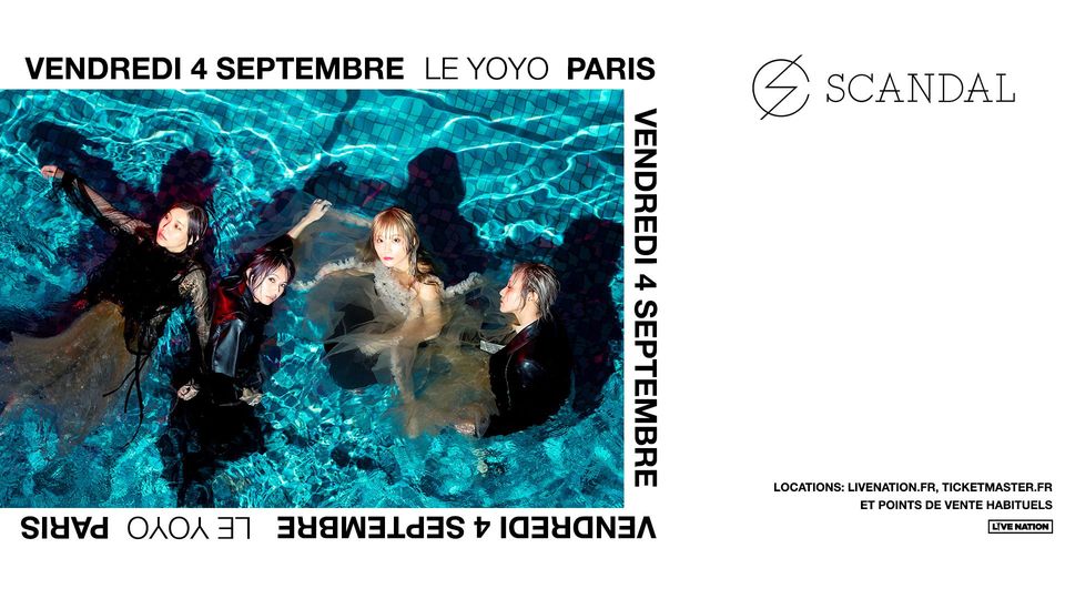 REPORT / Le concert de SCANDAL initialement prévu le 4 septembre 2020 au Yoyo - Palais de Tokyo est reporté au 26 octobre 2021 dans la même salle. Les billets restent valables pour cette nouvelle date. Nous nous excusons pour la gêne occasionnée.