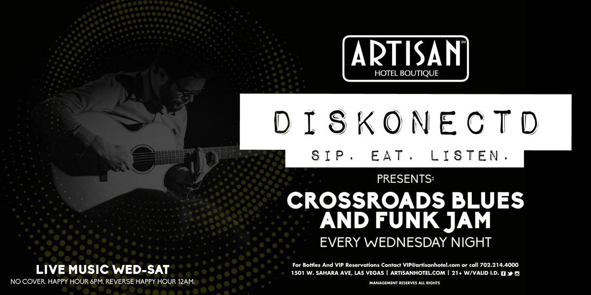 FREE EVENT! Live Music Every Wednesday Night from 9PM – 12AM Diskonectd Presents: Crossroads Blues & Funk Jam Live Music Every Wednesday Night from 9PM – 12AM NO COVER!