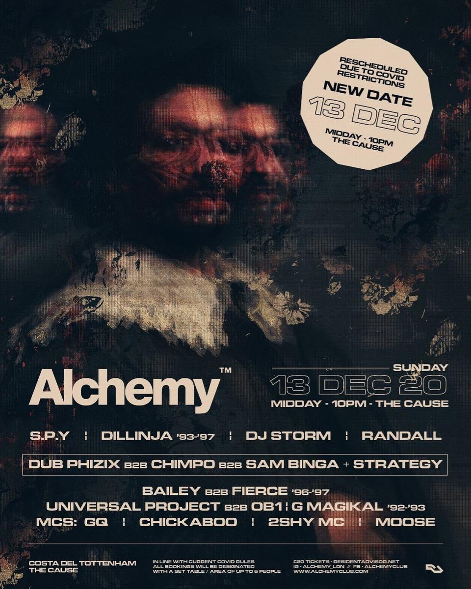 [RESCHEDULED] Alchemy ft S.P.Y, Dillinja, Dub Phizix, Chimpo, Randall, DJ Storm, Bailey, Fierce