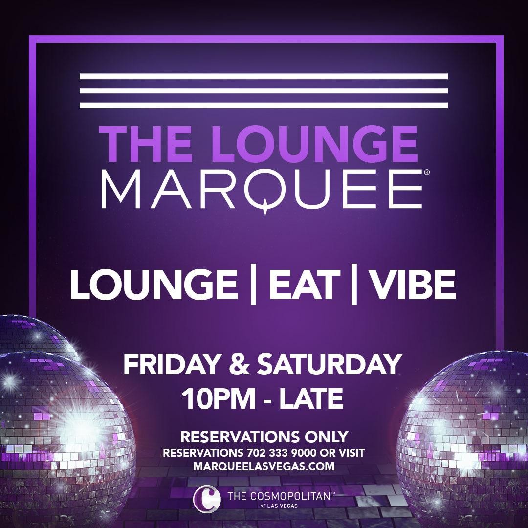Marquee Lounge will be open from 10 p.m. to late each Friday and Saturday. Reservations are required. Tables are available.